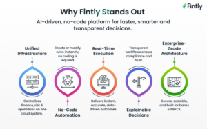 Fintly is not just another rules engine or workflow tool; it is an AI-driven Decision Intelligence Platform purpose-built for financial enterprises. It unifies policy, data, risk logic, and execution into a single, self-learning system. Here’s what sets Fintly apart: